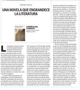 El pasado sábado 5 de octubre se publicó, en el diario Ideal, en su edición de Granada, la primera reseña dedicada a Sombras del Poniente. «Una novela que engrandece la Literatura» es su título. Rafael Ávila, poeta, crítico literario y compañero de oficio, con una larga trayectoria a sus espaldas en los tres ámbitos, es su autor.